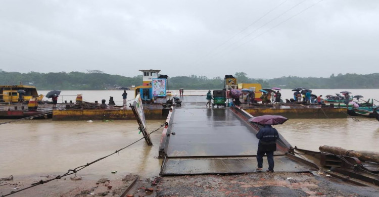 কর্ণফুলী নদীর তীব্র স্রোতে ফেরীরপল্টুন ক্ষতিগ্রস্থ, চন্দ্রঘোনায় ফেরী চলাচল বন্ধ