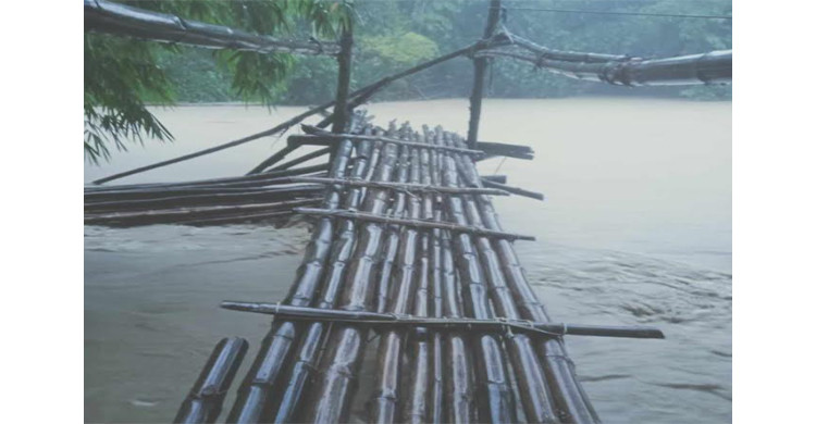 পাহাড়ী ঢলে ভেঙে গেলো রাইখালীর একমাত্র বাঁশের সাঁকোটি