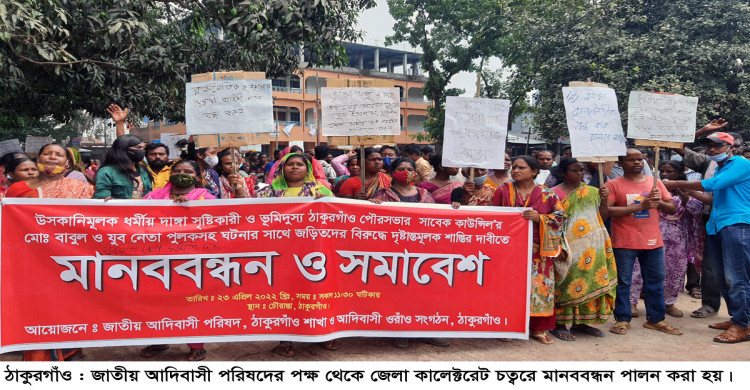 ঠাকুরগাঁওয়ে আদিবাসী পরিষদের মানববন্ধন