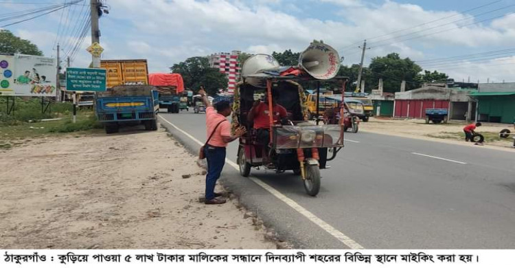 ঠাকুরগাঁওয়ে কুড়িয়ে পাওয়া ৫ লাখ টাকার মালিকের খোঁজে মাইকিং