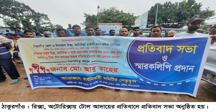 ঠাকুরগাঁওয়ে অটোরিকসার টোল আদায় বন্ধের দাবিতে প্রতিবাদ ও স্মারকলিপি