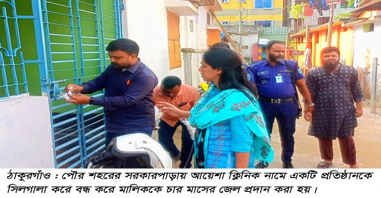 ঠাকুরগাঁওয়ে লাইসেন্সবিহীন ক্লিনিক পরিচলনার দায়ে মালিকের কারাদণ্ডাদেশ