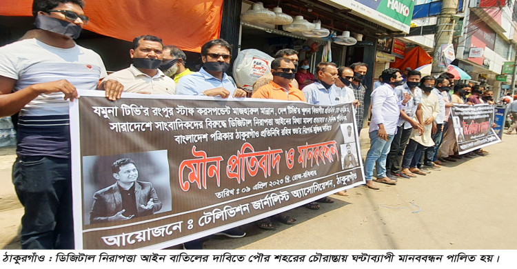 ঠাকুরগাঁও সাংবাদিকদের মৌন প্রতিবাদ ও মানববন্ধন