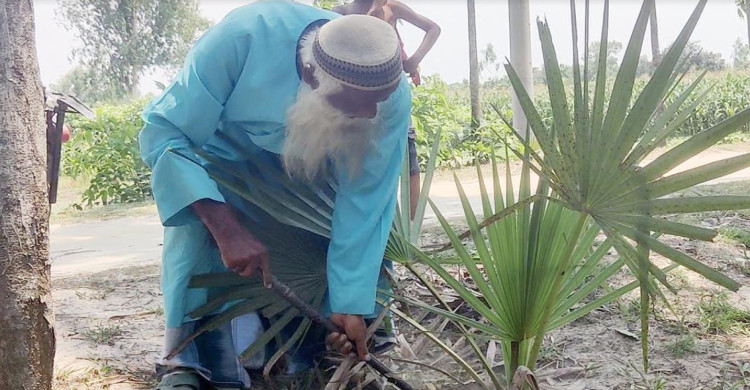 ঠাকুরগাঁওয়ে নিজের জমি বিক্রি করে তালগাছ রোপণ করছেন খোরশেদ