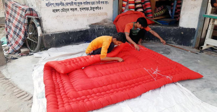 শীতের আগমন ঠাকুরগাঁওয়ে লেপ-তোষক বানাতে ব্যস্ত সময় পার করছেন কারিগররা