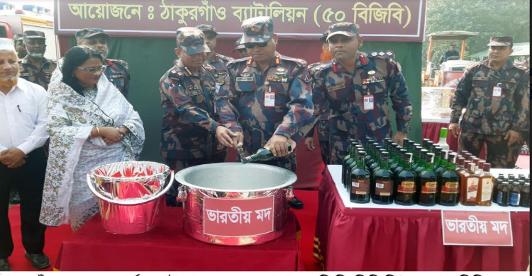 ঠাকুরগাঁওয়ে বিপুল পরিমান মাদক দ্রব্য ধ্বংস বিজিবি’র