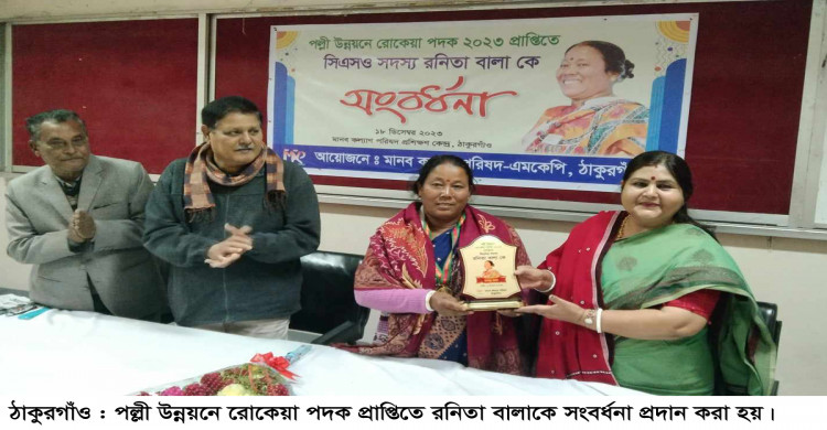 জাতীয় পদক পাওয়ায় ঠাকুরগাঁওয়ে রনিতা বালাকে সংবর্ধনা