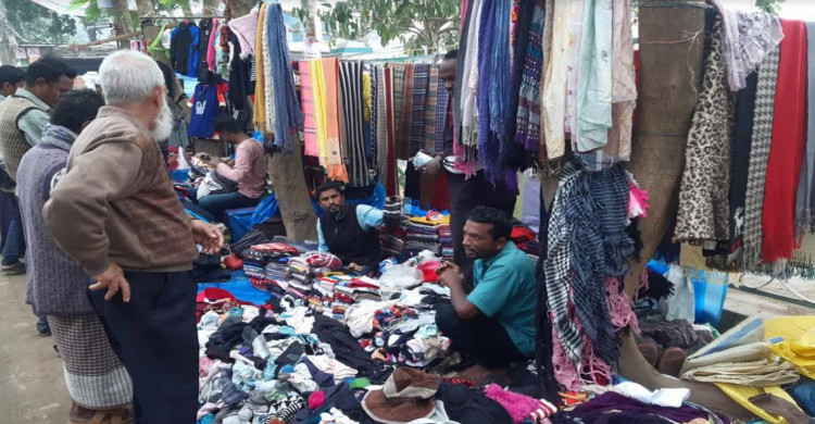 গুড়িগুড়ি বৃস্টিতে শীতের আমেজ ঠাকুরগাঁওয়ে জমে উঠছে শীতের মৌসুমী গরম কাপড় কেনাবেচা