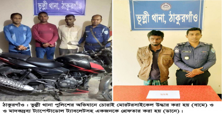 ঠাকুরগাঁওয়ে মাদকদ্রব্য ও চোরাই মোটরসাইকেল উদ্ধার : গ্রেফতার-৫
