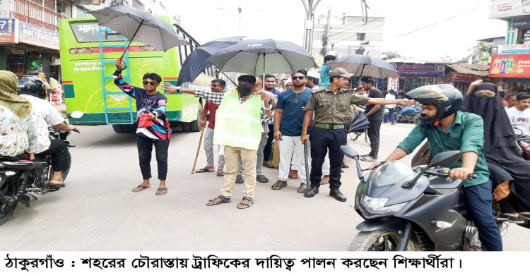 ঠাকুরগাঁওয়ে রাস্তার সিগন্যালে শিক্ষার্থীরা : ট্রাফিকের দায়িত্ব পালন