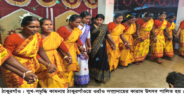ঠাকুরগাঁওয়ে সুখ-সমৃদ্ধি কামনায় ঠাকুরগাঁওয়ে ওরাঁও সম্প্রদায়ের কারাম উৎসব