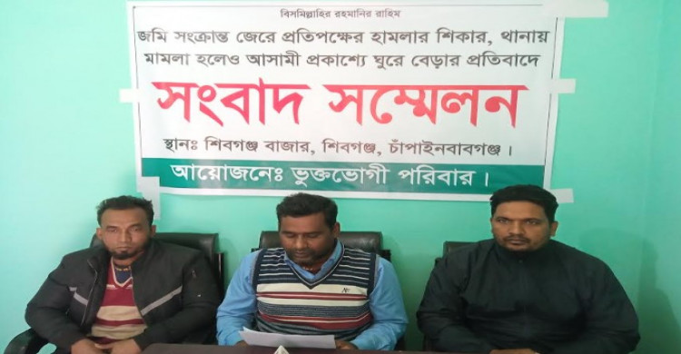 শিবগঞ্জে জমি বিরোধে প্রতিপক্ষের হামলার প্রতিবাদে সংবাদ সম্মেলন