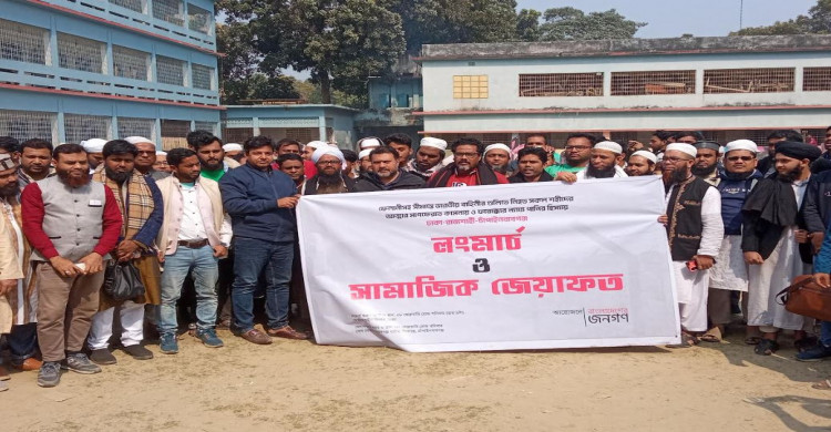 শিবগঞ্জে অনিয়ম-দুর্নীতির প্রতিবাদে প্রধান শিক্ষকের পদত্যাগ দাবিতে মানববন্ধন