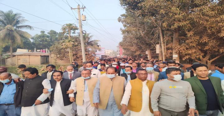 বাঘায় পৌর নির্বাচনে আ'লীগের নৌকার প্রচার মিছিল