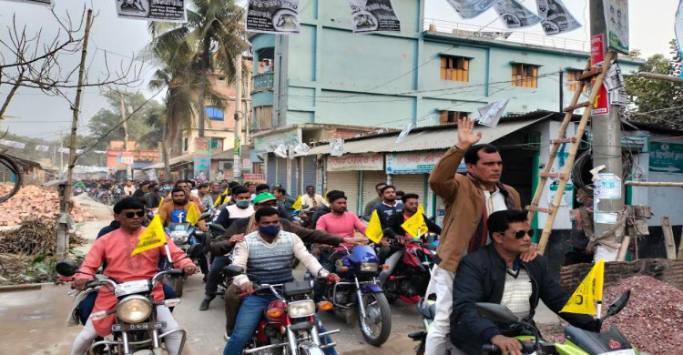 বাঘায় পৌর মেয়র প্রার্থী কামাল এর প্রচার মিছিলে ঐক্যবদ্ধ্য বিএনপি