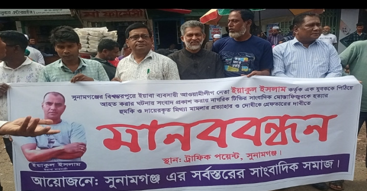 ইয়াবা সম্রাট ইয়াকুল কর্তৃক নাগরিক টিভির প্রতিনিধির বিরুদ্ধে দায়েরকৃত মিথ্যা মামলা প্রত্যাহারের দাবীতে মানববন্ধন
