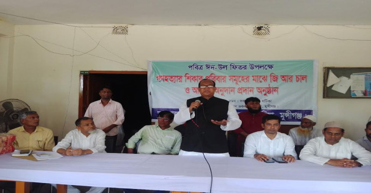 গজারিয়ায় গণহত্যা পরিবারের মাঝে চাল ও আর্থিক অনুদান প্রদান
