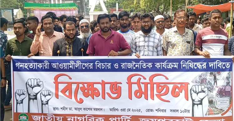 আওয়ামী লীগের বিচার ও রাজনৈতিক কার্যক্রম নিষিদ্ধের দাবিতে জয়পুরহাটে নাগরিক পার্টির বিক্ষোভ মিছিল