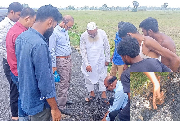 সদ্য হওয়া রাস্তায় আঙ্গুলের চাপে উঠছে পাথর!