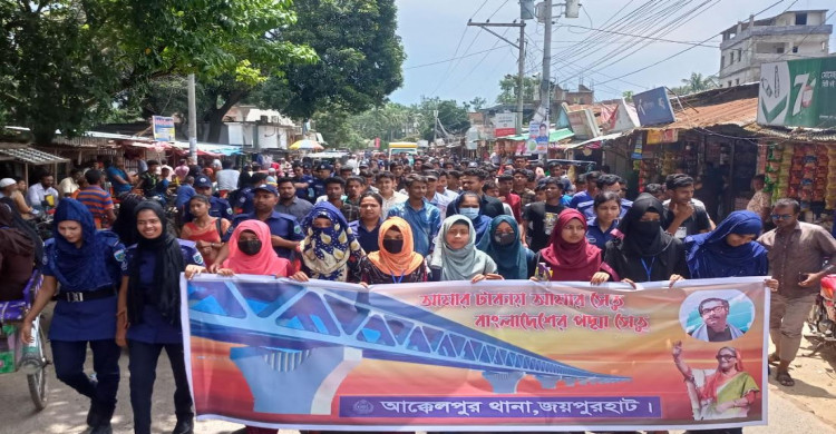 পদ্মা সেতুর উদ্বোধন উপলক্ষে আক্কেলপুর থানার আনন্দ র্যালি