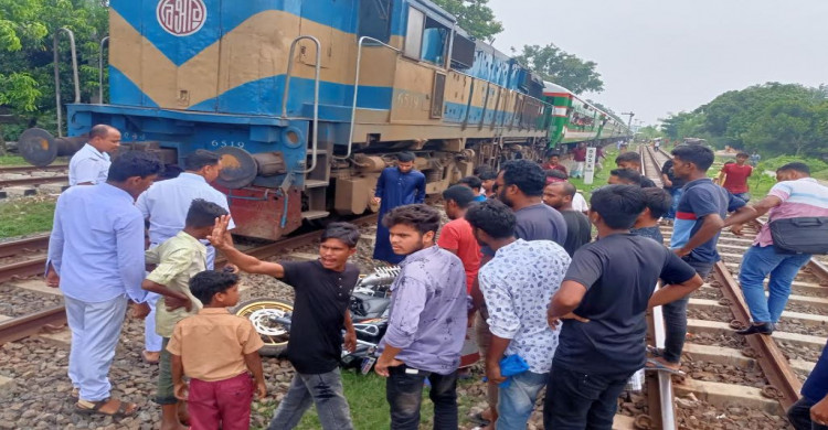 আক্কেলপুরে ট্রেনের ধাক্কায় মোটরসাইকেল চূর্ণ
