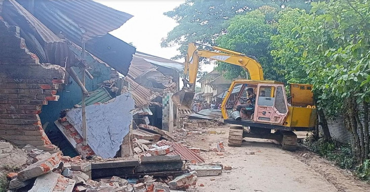 আক্কেলপুরে রাস্তা সম্প্রসারণে উপজেলা প্রশাসনের উচ্ছেদ অভিযান