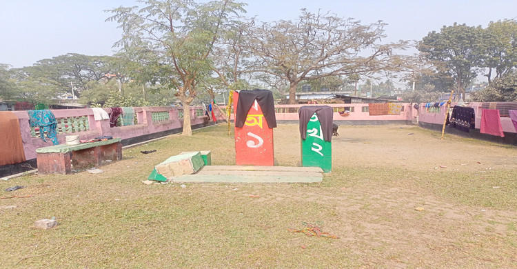 আক্কেলপুরে ভেঙ্গে রয়েছে কেন্দ্রীয় শহীদ মিনারের স্তম্ভ
