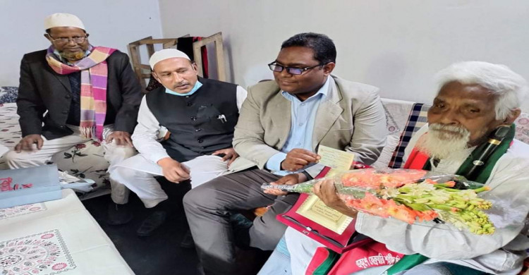 আক্কেলপুরে জীবন্ত ভাষা সৈনিক ডা. আজিজার রহমানকে সম্মাননা
