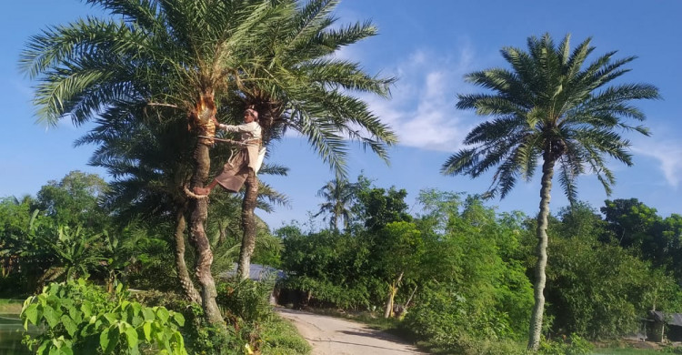 শীতের আগমনে খেজুর গাছ প্রস্তুতে ব্যস্ত গাছিরা