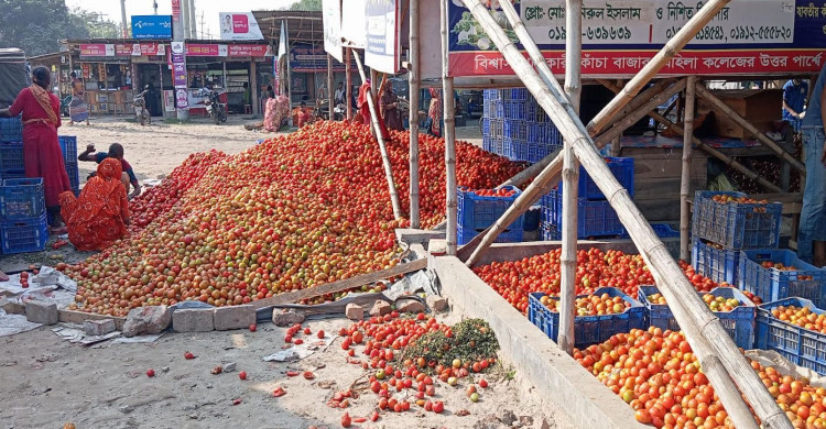 ডুমুরিয়ার পাইকারি বাজারে টমেটোর ছড়াছড়ি