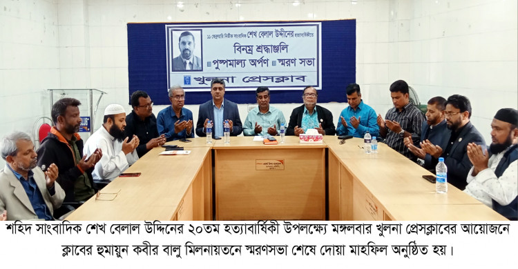 শহিদ সাংবাদিক শেখ বেলাল উদ্দিনের হত্যাবার্ষিকী উপলক্ষ্যে খুলনা প্রেসক্লাবে স্মরণসভা অনুষ্টিত