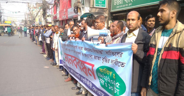 খুলনায় বৈষম্যমুক্ত নবম পে-স্কেল বাস্তবায়নের দাবীতে মানববন্ধন অনুষ্ঠিত