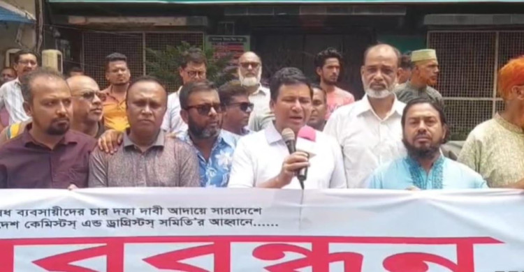খুলনায় বাংলাদেশ কেমিস্টস অ্যান্ড ড্রাগিস্টস সমিতির মানববন্ধন