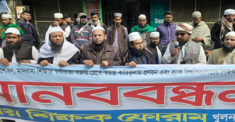 জাতীয় শিক্ষক ফোরামের মানববন্ধন খুলনায় অনুষ্ঠিত হয়েছে