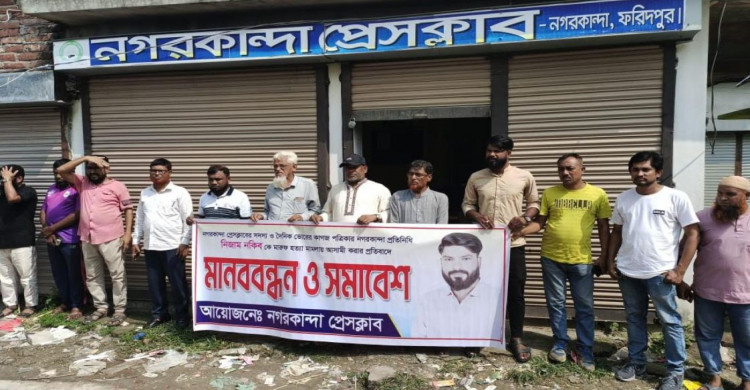 নগরকান্দায় সাংবাদিকদের মানববন্ধন ও সমাবেশ