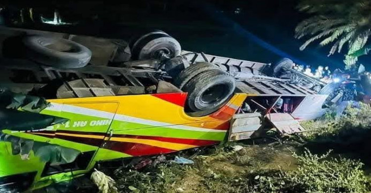 নগরকান্দায় বরযাত্রীবাহী বাস নিয়ন্ত্রণ হরিয়ে খাদে; নিহত-১, আহত-৩৭