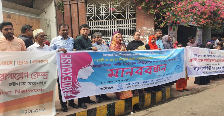 নারী ও কন্যার প্রতি সহিংসতা বন্ধে এগিয়ে আসুন মানববন্ধনে বক্তারা