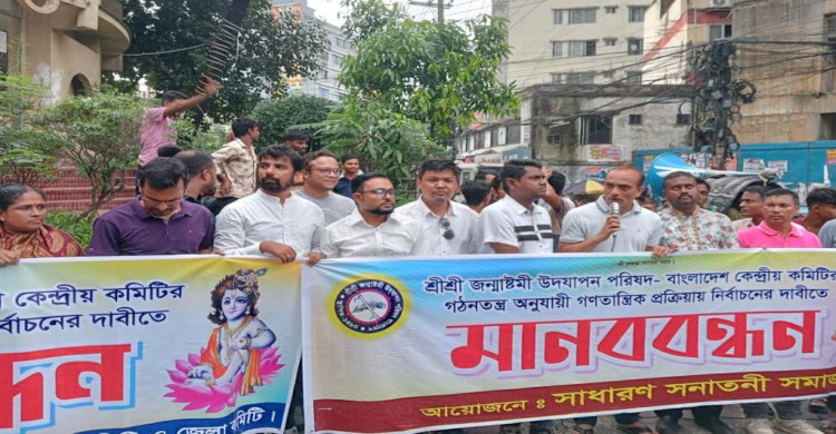 জন্মাষ্টমী উদযাপন পরিষদ দখলের প্রতিবাদে চট্টগ্রামে সনাতনী সমাজের মানববন্ধন