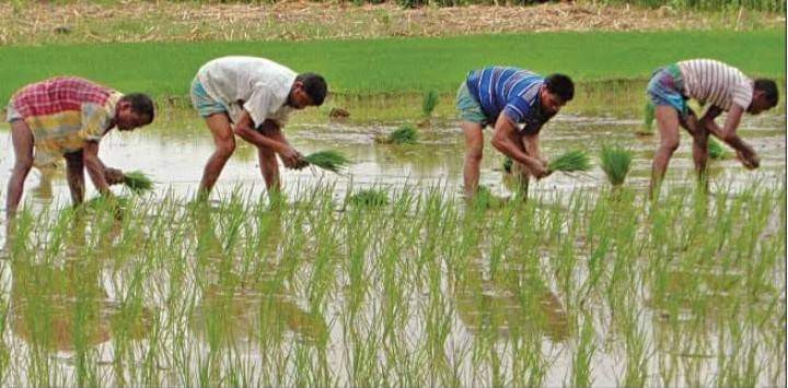 নিয়ামতপুরে রোপা আমনের চারা রোপণে ব্যস্ত চাষিরা