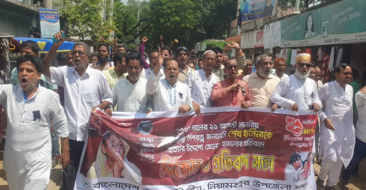 ২১ আগস্ট গ্রেনেড হামলার প্রতিবাদে নিয়ামতপুরে উপজেলা আ‘লীগের বিক্ষোভ মিছিল ও সমাবেশ