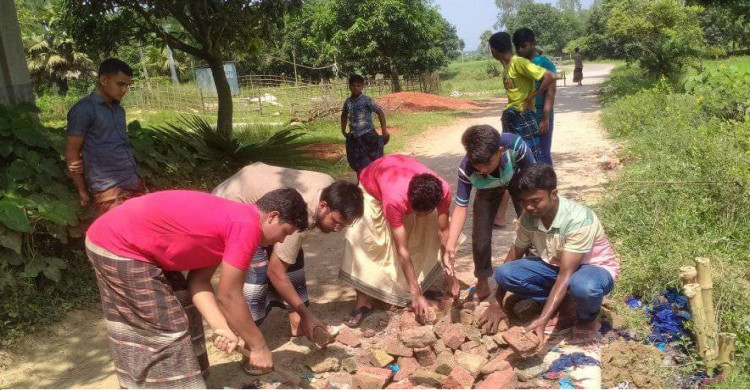 নিয়ামতপুরে ক্ষতিগ্রস্ত রাস্তা সংস্কারে স্বেচ্ছাসেবকটিম