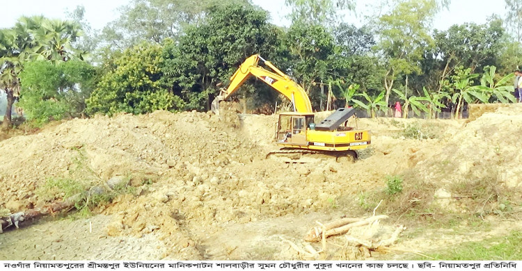 নিয়ামতপুরে সরকারী নিষেধাজ্ঞা অমান্য করে পুকুর খনন চলছে