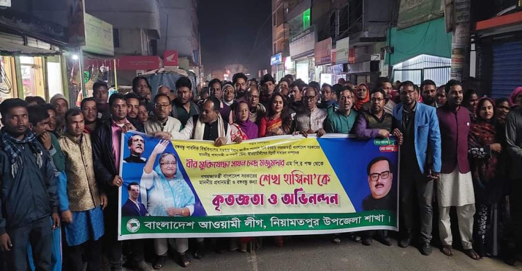 নওগাঁয় বঙ্গবন্ধু পাবলিক বিশ্ববিদ্যালয় বিল পাশ হওয়ায় নিয়ামতপুরে আনন্দ শোভাযাত্রা