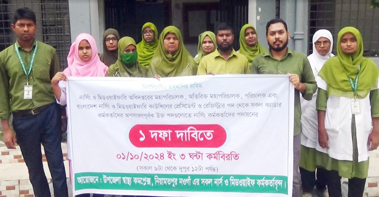 নিয়ামতপুরে নার্সিং ও মিডওয়ারি সংস্কার পরিষদের ৩ ঘণ্টা কর্মবিরতি পালিত