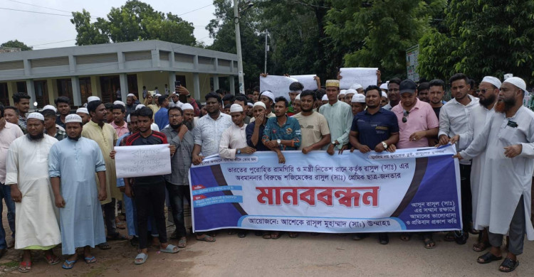 ভারতে রাসূল (সা.)-কে অবমাননার প্রতিবাদে নিয়ামতপুরে মানববন্ধন