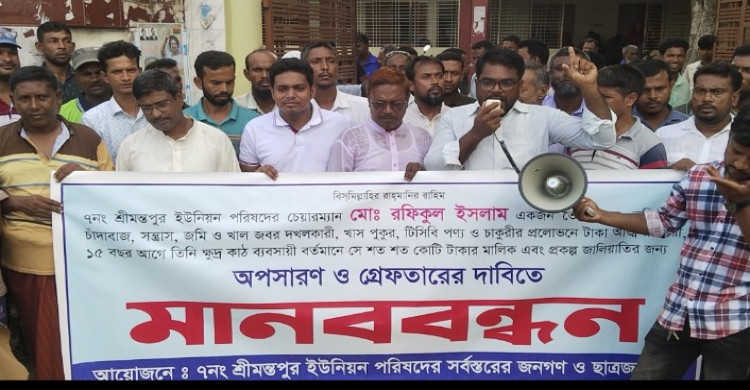নিয়ামতপুরের শ্রীমন্তপুর ইউপি চেয়ারম্যানের অপসারণ দাবিতে মানববন্ধন