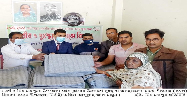 নিয়ামতপুর উপজেলা প্রেসক্লাবের উদ্যোগে দুস্থদের মাঝে শীতবস্ত্র বিতরণ