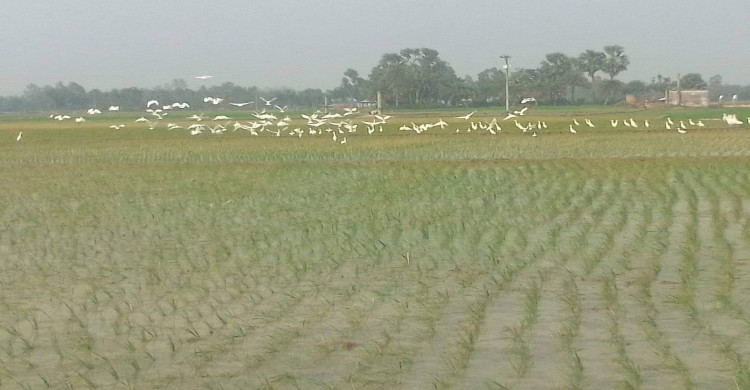 নিয়ামতপুরে ধানক্ষেতে ঝাঁকে ঝাঁকে বক পাখির আনাগোনা