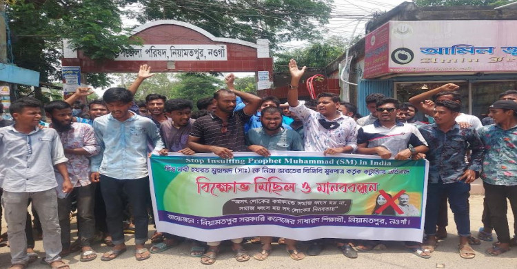 নিয়ামতপুরে মহানবীকে কটূক্তির প্রতিবাদে বিক্ষোভ মিছিল ও মানববন্ধন