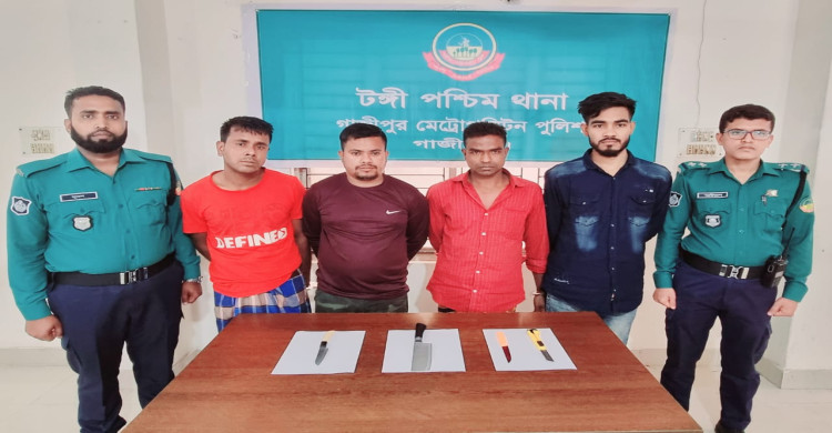 টঙ্গীতে দেশীয় অস্ত্রসহ ৪ ডাকাত গ্রেফতার